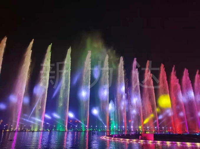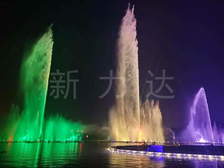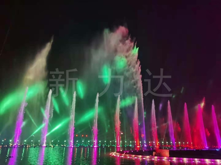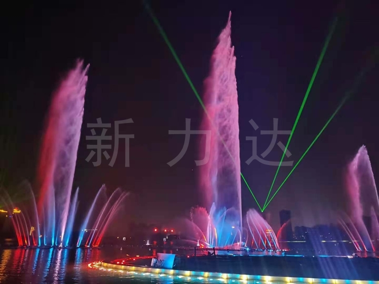 我公司承建的驻马店人民公园水景项目共分为湖面大型激光水舞秀、椭圆形舞台彩色喷泉、大看台景观彩色喷泉、湖中三组特制高喷、观光步行道沿岸雾森水景等五组水景。其中激光水舞秀项目,秉承人与自然同生共舞。设计长200米*宽40米的湖面音乐喷泉,圆形布局,鸟语花香,
